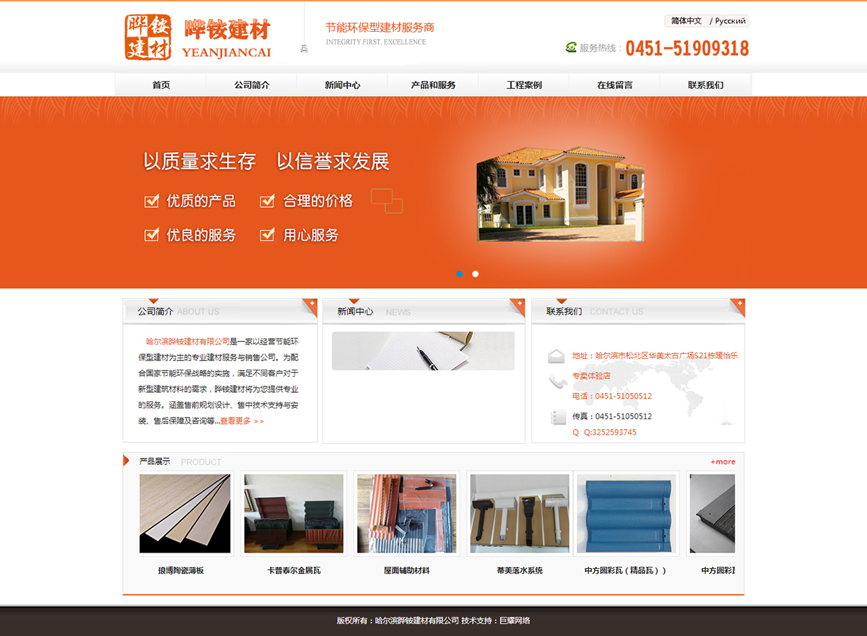 哈爾濱曄銨建材有限公司,是一家以經(jīng)營節(jié)能環(huán)保型建材為主的專業(yè)建材服務與銷售公司。為配合國家節(jié)能環(huán)保戰(zhàn)略的實施,滿足不同客戶對于新型建筑材料的需求,曄銨建材將為您提供專業(yè)的服務。涵蓋售前規(guī)劃設計、售中技術支持與安裝、售后保障及咨詢等。曄銨建材榮譽成為“蒂美”落水系統(tǒng)、“瑯博”陶瓷薄板、“卡普泰爾”金屬瓦、“中方圓”水泥瓦等業(yè)界一線知名品牌的省級經(jīng)銷商。為您提供全方位的屋面系統(tǒng)、墻面(內外)系統(tǒng)、排水系統(tǒng)、新型保溫系統(tǒng)、內部裝修系列產(chǎn)品供應等服務,打造由外到內一站式高、中端建材整體服務模式,率先引領新型建材銷售服務體系的建立與標準。