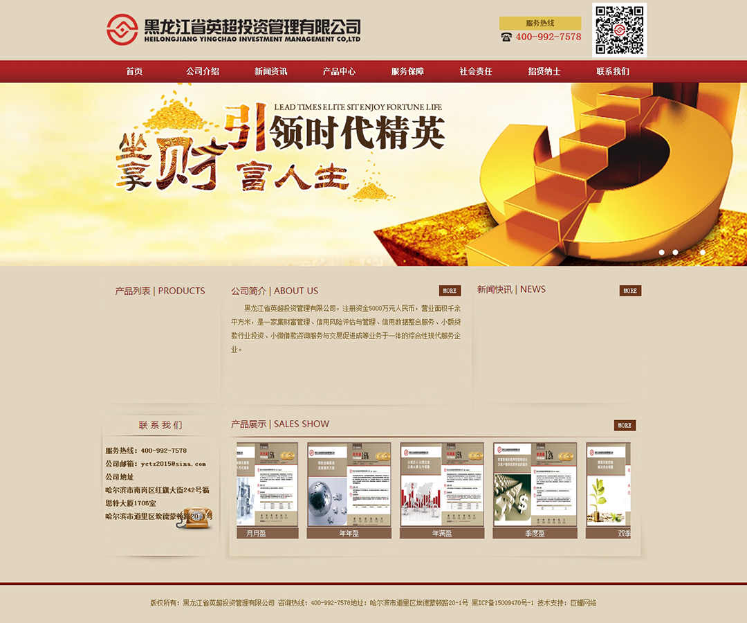 黑龍江省英超投資管理有限公司,注冊資金5000萬元人民幣,營業(yè)面積千余平方米,是一家集財富管理、信用風險評估與管理、信用數(shù)據(jù)整合服務(wù)、小額貸款行業(yè)投資、小微借款咨詢服務(wù)與交易促進成等業(yè)務(wù)于一體的綜合性現(xiàn)代服務(wù)企業(yè)。