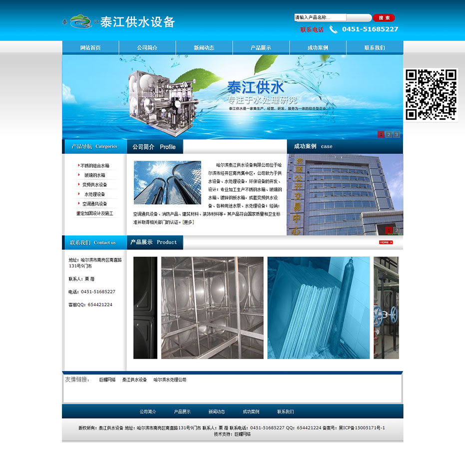 哈爾濱泰江供水設備有限公司位于哈爾濱市經開區(qū)南崗集中區(qū),公司致力于供水設備、水處理設備,環(huán)保設備的開發(fā)、設計;專業(yè)加工生產不銹鋼水箱、玻璃鋼水箱、鍍鋅鋼板水箱,成套變頻供水設備、各種用途水泵、水處理設備;經銷:空調通風設備、消防產品、建筑材料、裝飾材料等。其產品符合國家質量和衛(wèi)生標準并取得相關部門的認證。