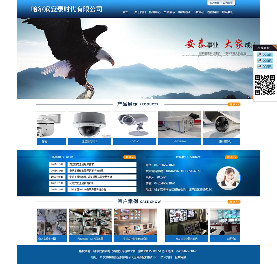 哈爾濱安泰時代科技有限公司是一家專業(yè)從事監(jiān)控器材批發(fā)及監(jiān)控攝像機、樓宇對講、報警等集成系統(tǒng)的安裝及調(diào)試、專業(yè)性的安防企業(yè),主要為現(xiàn)代安防市場提供:??怠⒅芯S、漢邦、安泰、亮江南攝像機。